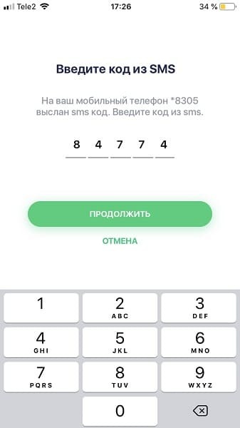 - введите код из СМС-сообщения;