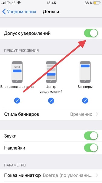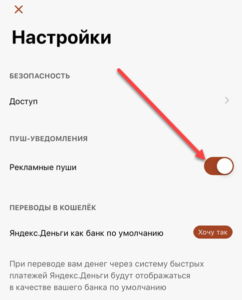 Последний шаг – перейти к параметрам профиля, кликнуть по шестеренке и в верхней части интерфейса перевести ползунок с пуш-уведомлениями (в том числе и рекламными) в активное положение.