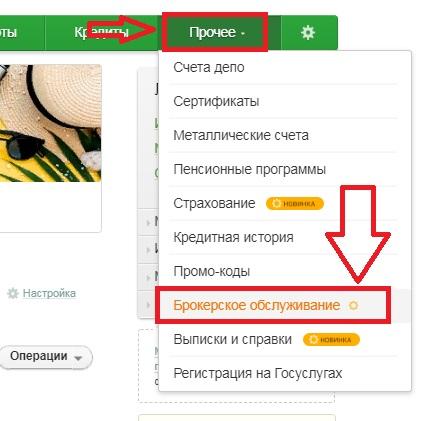 - Затем необходимо перейти в раздел «Прочее», пункт меню «Брокерское обслуживание».
