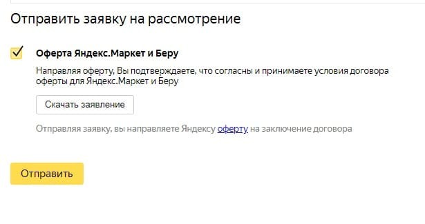 - Подтвердите свое согласие с условиями договора-оферты и отправку заявки на рассмотрение. Нажмите на кнопку “Отправить”.