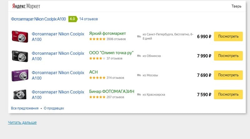 - переход на Яндекс.Маркет, а затем на сайт магазинов-партнеров в течение 7 дней.