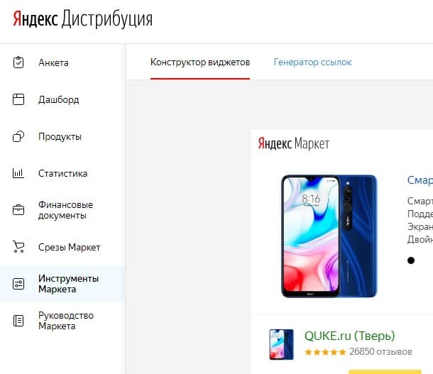 Концепция «Яндекс.Маркета» неоднократно менялась. Раньше владельцам сайтов, блогов и интернет-магазинов предлагалось встраивать элементы непосредственно в веб-страницу, часами разбираясь с кодом и экспериментируя с наполнением. Но после ряда обновлений модель взаимодействия с партнерской программой изменилась – отныне подготовка виджетов происходит с помощью конструктора, представленного на официальном сайте сервиса.