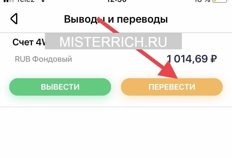 “Инвестиции и пенсии” > Номер счета > Выбор рынка (срочный или фондовый) > “Пополнить счет”.