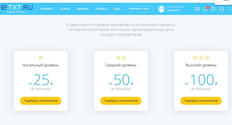 Расценки здесь не самые высокие, однако для новичков в копирайтинге созданы вполне лояльные условия. Нет обязательных тестов перед регистрацией, как на закрытых биржах. Первый свой опыт вы можете наработать именно здесь, а дальше искать более выгодные расценки по мере роста вашего профессионального уровня.