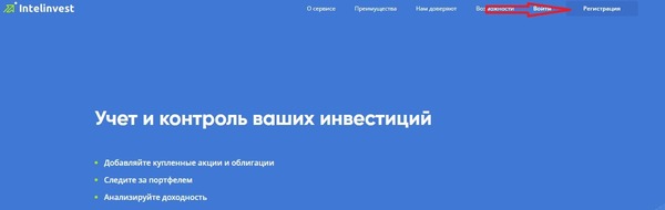 Зайдите на сайт https://intelinvest.ru/ . В левом верхнем углу нажмите кнопку «Регистрация» или «Начать пользоваться бесплатно».