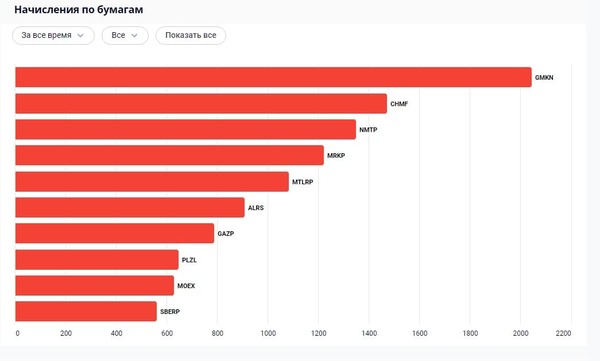 - Начисленные купоны и дивиденды с начала инвестирования по годам с указанием компаний который их выплачивают, прогнозные суммы дивидендов исходя из имеющихся активов.