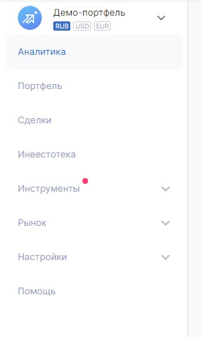 - управление портфелем – количество портфелей зависит от тарифа. В подразделе можно добавить портфель, установить короткие позиции, комиссии и др.;