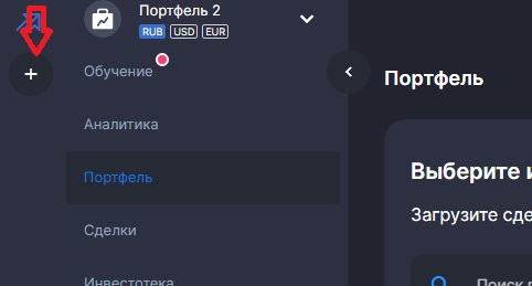 В портфеле нажмите знак «+» в левом верхнем углу.