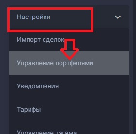 Перейдите в раздел “Настройки” – “Управление портфелями”.
