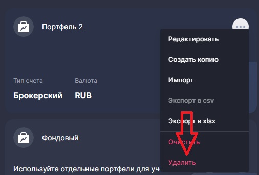 Как удалить портфель?