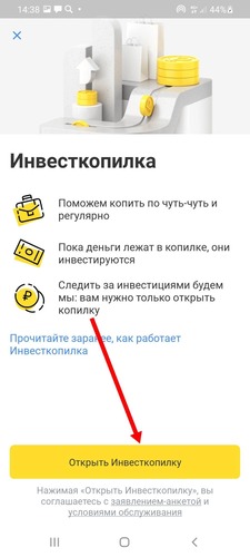 - Ознакомьтесь с условиями счета и перейдите по ссылке “Открыть Инвесткопилку”.