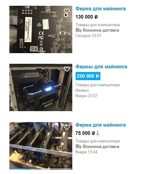 В 2017 году разрастался ажиотаж вокруг Эфира и его добычи, в результате чего с прилавком магазинов стали быстрыми темпами пропадать видеокарты, использующиеся для создания майнинговой фермы, что привело к появлению дефицита комплектующих. Ажиотаж был настолько велик, что многих не останавливали даже цены, которые в то время увеличивали преднамеренно в несколько раз. Для создания фермы требуется 4 видеокарты, стоимость которых составляла порядка 2,5 тысячи долларов, окупаемость наступает через год, после чего можно получать прибыль.
