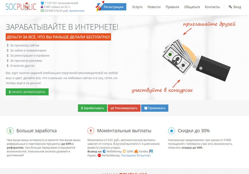 - Socpublic – отличается удобным, интуитивно понятным функционалом, что особенно важно для новичка в этой сфере работы. Лайки, репосты, клики, комментарии от 20 копеек.