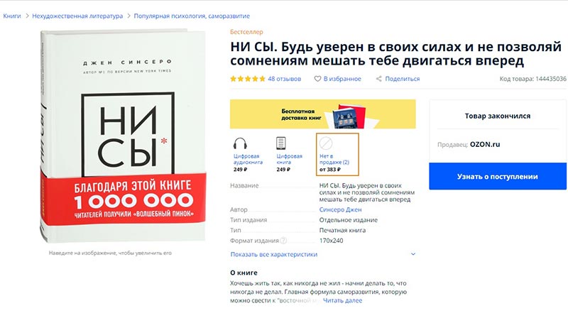 Начать жить по-новому — именно на это и направлено восточное учение НИ СЫ, о котором отлично написала Джен Синсеро. Её книга вышла общим тиражом в 1000000 экземпляров. Книга представляет собой электрошокер для всех тех, кто желает найти новые стимулы в рутинной жизни. Книга состоит из 25 практических методик развития, которые способны помочь человеку начать меняться, максимально раскрыть свое “Я”.