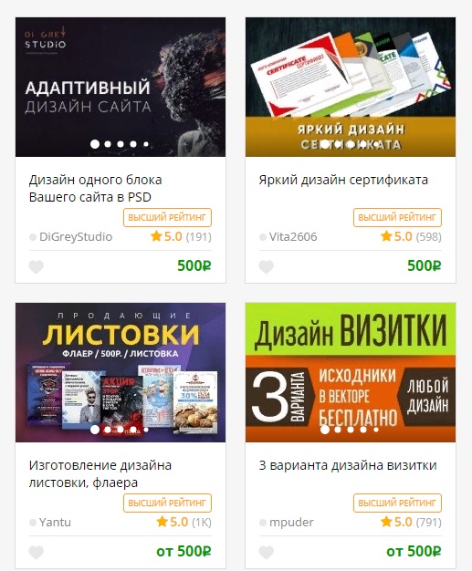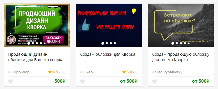 Если вы затрудняетесь с созданием стильного и привлекательного дизайна, то вы можете тут же на бирже заказать оформление обложки в соответствующем разделе у дизайнеров. Стоит такая услуга от 500 руб.