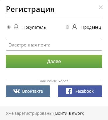 Без оформленного аккаунта разработчики разрешают свободно просматривать страницы Кворк и перемещаться между тематиками «товаров» и услуг и конкретными предложениями фрилансеров, рубриками и поиском. Но, если же появилось желание зарабатывать или покупать, то без личного аккаунта уже не обойтись.