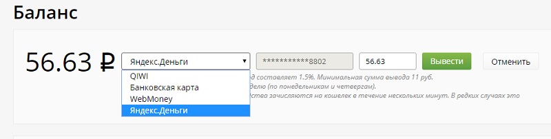 | Способ вывода денег | Минимальная сумма | Комиссия |