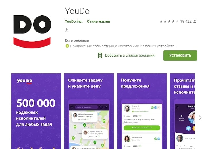 - YouDo – найм сотрудников на работу. Через приложение можно найти множество заданий. Например, может требоваться человек на доставку продукции, распечатка документации и многое другое. Подобная работа оплачивает хорошо. Цена за выполненное задание может варьироваться от 400 до 2000 рублей.