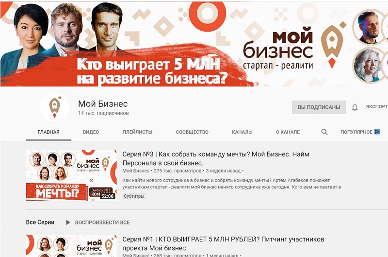 Кроме личного кабинета с базой знаний портал, посвященный предпринимательству, разрешает просматривать тематические ролики и на YouTube. На канале записи появляются с той же периодичностью, что и на сайте – 2-3 раза в неделю.