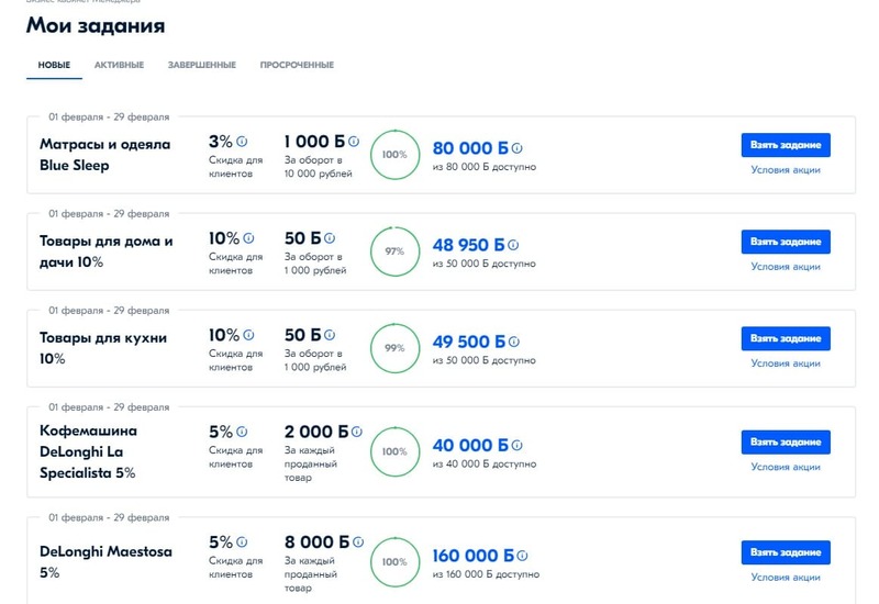 В разделе «задания» можно ознакомиться с доступными акциями и ознакомиться с их условиями. Если вас устраивают условия, то кликните по кнопке «Взять задание», чтобы приступить к его выполнению.