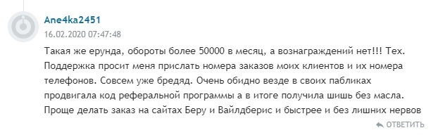 Так как партнерка появилась совсем недавно, то и отзывов в сети совсем мало. По данным сервиса “Отзовик” рекомендуют этот сервис только 28% пользователей. По Irecommend оценка — 4 из 5. Негативные отзывы в основном связаны с тем, что партнеры не разобрались со всеми нюансами программы и не получили того результата, который ожидали.