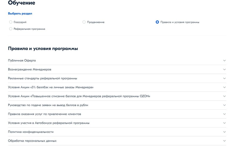 - Правила и условия (здесь размещены публичная оферта, условия начисления вознаграждения и другие аспекты).