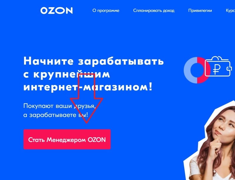 - Откройте ссылку: ozon.ru/manager, кликните по кнопке «Стать менеджером».
