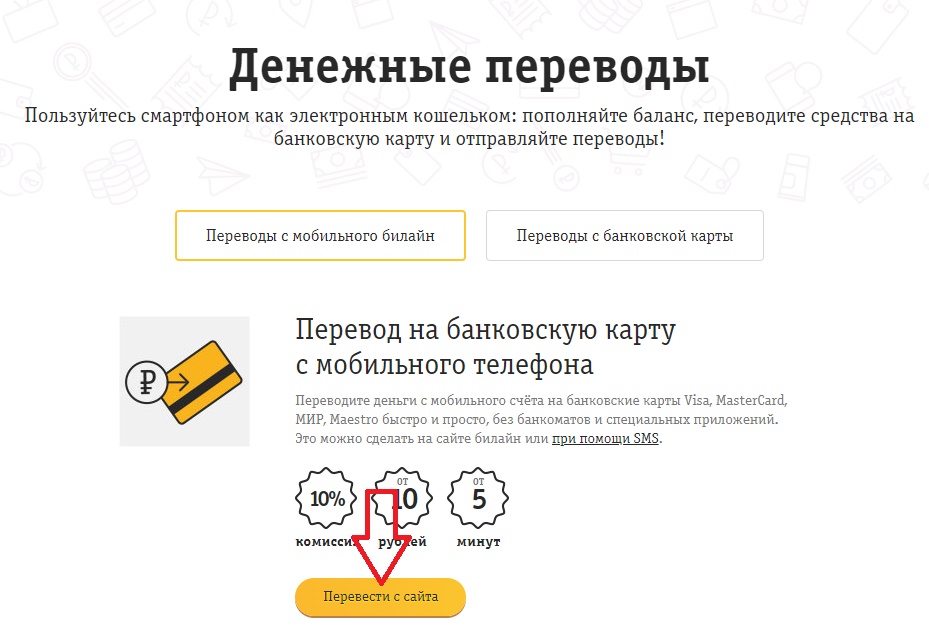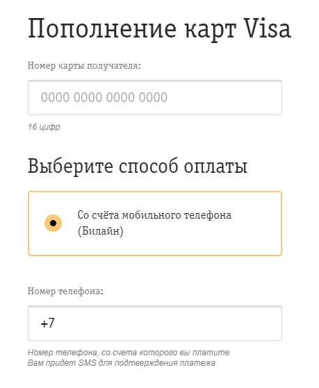Перечислить средства на карточку с баланса смартфона, если вы держатель сим-карты Билайн, можно 2 способами: заполнив виртуальную форму на сайте или отправив сообщение на нужный номер.