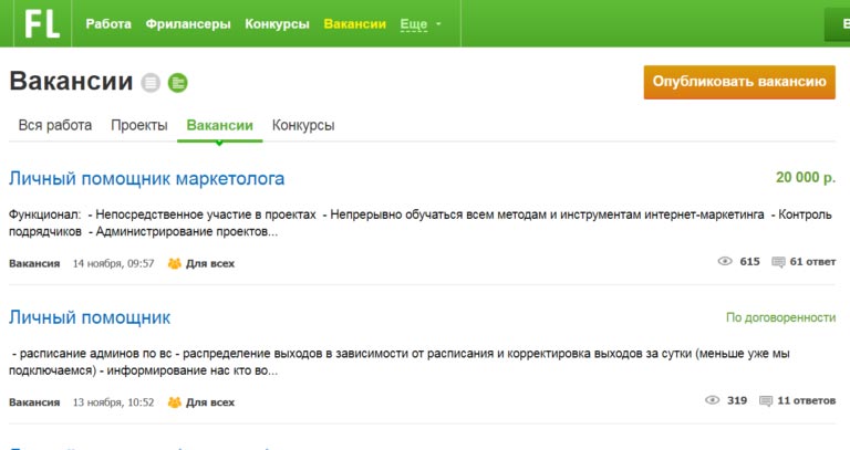 Искать вакансии личного помощника можно на следующих сайтах: