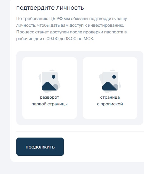- Загрузите фото паспорта для подтверждения своей личности.