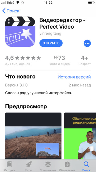 Это одно из самых популярных приложений для монтирования видео. Оценка в App Store 4,9.