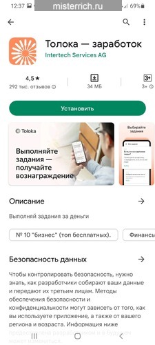 Toloka — удобное и функциональное приложение от разработчиков Яндекс, где можно выполнять задания, не имея специального образования или навыков. Подрабатывать могут и студенты, и взрослые: необходимо сравнивать изображения, оценивать эффективность рекламных материалов, искать ошибки в текстах.