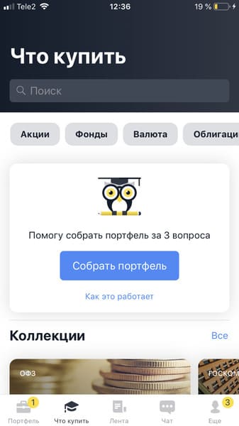 - Для новичков предусмотрен удобный сервис «Робот-советник», который поможет собрать сбалансированный портфель, ответив всего на 3 вопроса.