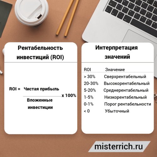 Рентабельность инвестиций ROI: что это, формула и примеры расчета, калькулятор