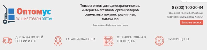 Популярная компания «Оптомус» специализируется на оптовой продаже товаров для сайтов одностраничников, многочисленных интернет-магазинов и начинающих организаторов СП. Причем мы также ориентированы на продажу товаров для тех многочисленных клиентов, которые не занимаются сетевой торговлей. К примеру, это розничные павильоны в российских регионах и во всех странах СНГ. После поступившей оплаты наши сотрудники за сутки собирают заказ, а затем оперативно отправляют его выбранным способом. Подготовленный заказ доставляется в регион за четыре дня.