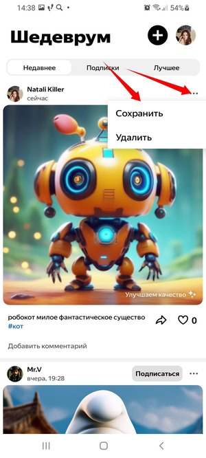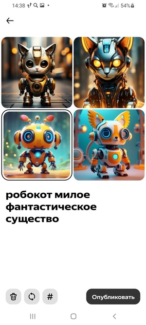 При публикации поста отображается не только результат творческой работы, но и изначальный запрос. Таким образом другие пользователи смогут научиться пользоваться нейросетью, делиться друг с другом опытом, черпать новые идеи и достигать наилучших результатов.