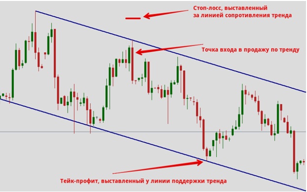 - Трендовая стратегия, т.е. торговля в направлении тренда. Позицию открывают при достижении определенных уровней поддержки или сопротивления. На них же ориентируются и при расположении SL.