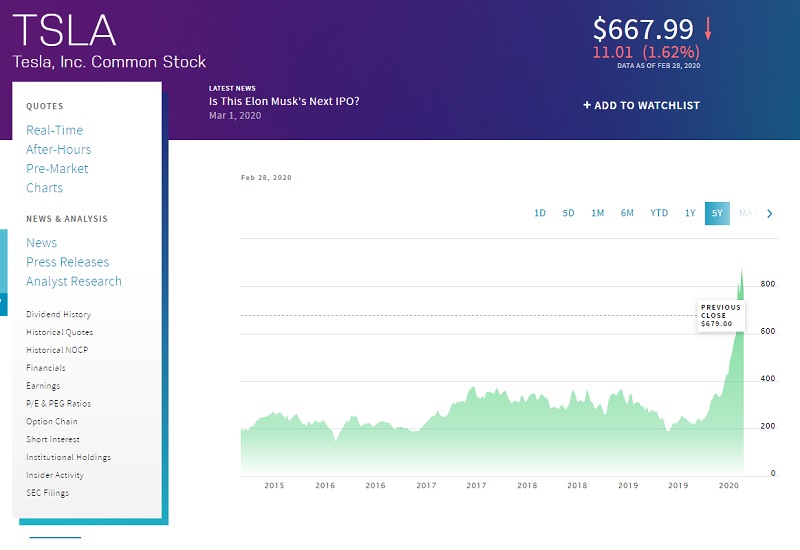 Акции Тесла — это иностранные ценные бумаги. Эмитент расположен в США. Ценные обращаются на следующих фондовых биржах: