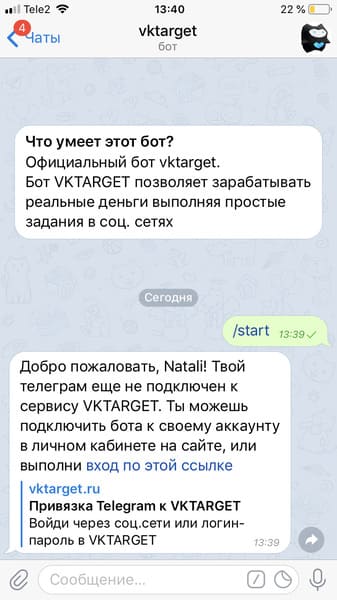 Компанией VKTarget разработан бот в Telegram, который позволяет выполнять различные задания в соцсетях прямо с мобильного телефона. Найти его можно через поисковую строку по названию @vktarget_bot.