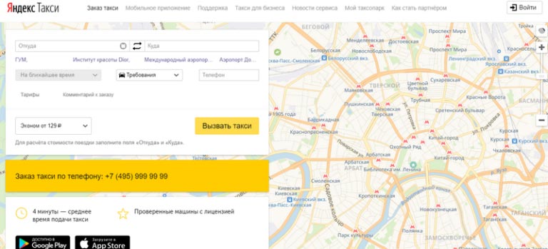 Яндекс.Такси – самая крупная служба в сфере перевозки людей, насчитывающая свыше 200 тысяч автомобилистов не только из России, но и из стран ближнего зарубежья. Эта служба такси имеет отличие от конкурентов в принципе работы. Если все перевозчики принимают вызовы только по телефону, то Яндекс.Такси делает это дополнительно на официальном сайте http://taxi.yandex.ru и с одноименного мобильного приложения.