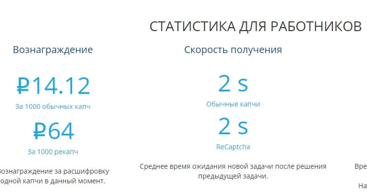 - RuCaptcha— сервис для заработка на вводе капчи и текстов с отсканированных документов с оплатой от 15 рублей за 1000 разгаданных кодов.